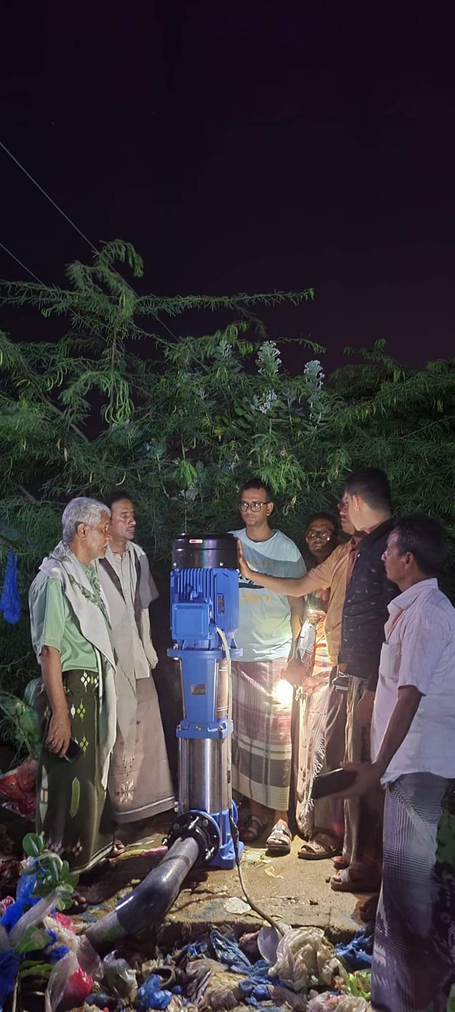 جرى تركيب المضخة بحضور كل من المهندس زين العيدروس مدير مؤسسة المياه بالمديرية والأستاذ علي القرزي نائب مدير المؤسسة والمهندس مروان حمران مدير دائرة المياه بالمؤسسة وعدد من مهندسي مؤسسة المياه بالمديرية .