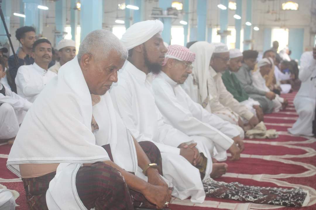 أدى الأستاذ عادل أحمد باعكابة المدير العام لمديرية الشحر والعقيد صالح مبروك السباعي نائب مدير أمن الشحر مع جموع المصلين صلاة عيد الأضحى المبارك بالجامع الكبير .