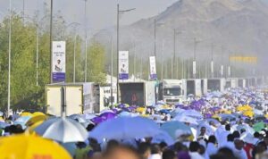 حذرت وزارة الصحة السعودية، حجاج بيت الله الحرام، من أخطار التعرض لأشعة الشمس، لا سيما في وقت الذروة من الساعة 11 صباحا إلى الساعة 4 مساًء، حيث يتزامن موسم الحج هذا العام 1445هـ مع ارتفاع درجات الحرارة بالمشاعر المقدسة.
