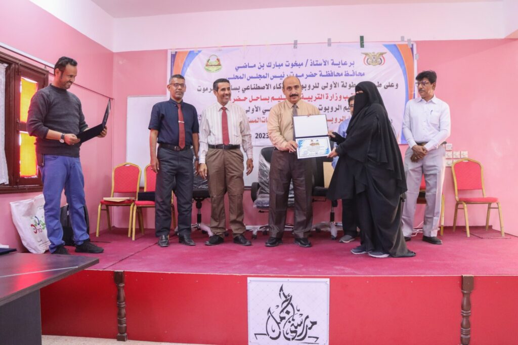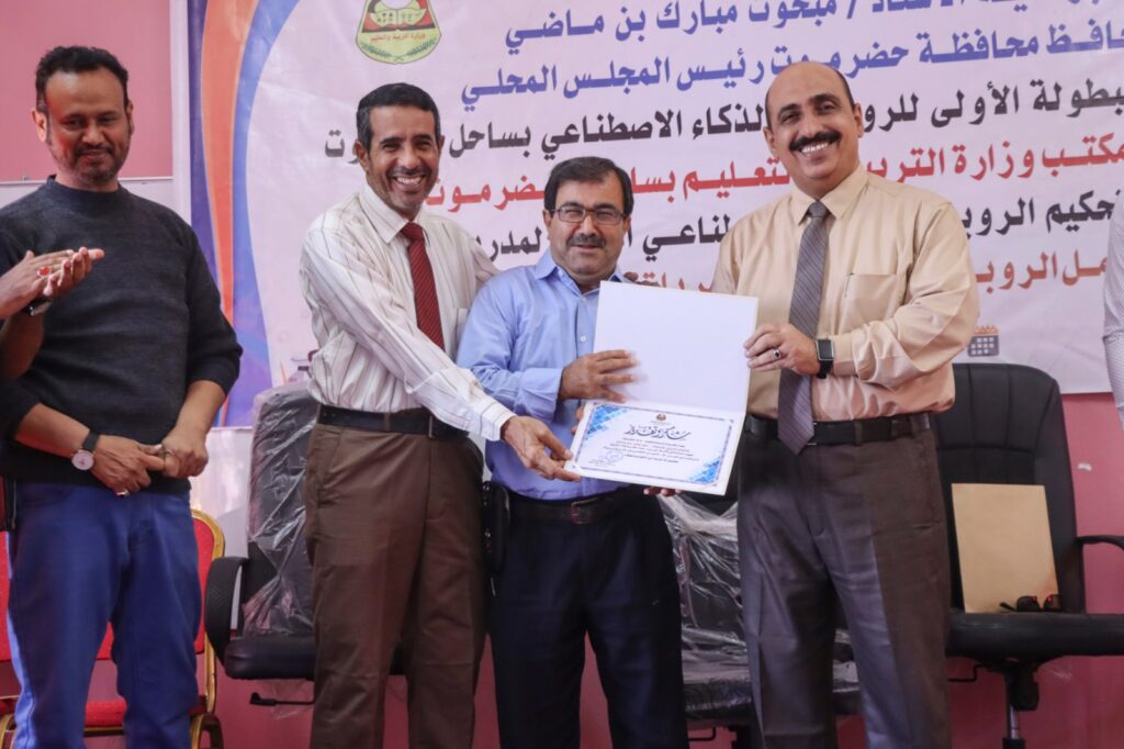اختتم مكتب وزارة التربية والتعليم بساحل حضرموت (الدورة التدريبية النوعية الأولى في مجال تحكيم الروبوت والذكاء الاصطناعي لمدربي معامل الروبوت على مستوى مديريات المحافظة) والتي تأتي تمهيداً لتنظيم البطولة الأولى للروبوت والذكاء الاصطناعي بساحل حضرموت برعاية الأستاذ مبخوت مبارك بن ماضي محافظ حضرموت؛ وفي كلمته في اختتام أعمال الدورة التي احتضنتها قاعة التدريب بمجمع الميناء التعليمي للبنات على مدى خمسة أيام متتالية؛ عبر الأستاذ أمين عبدالله باعباد مدير تربية ساحل حضرموت عن سعادته بما تحقق من جهد من قبل الجميع في إنجاح الدورة التي تعتبر إنجازاً وترقية جديدة في مجال عالم الروبوت والذكاء الاصطناعي على مستوى مدارس حضرموت .