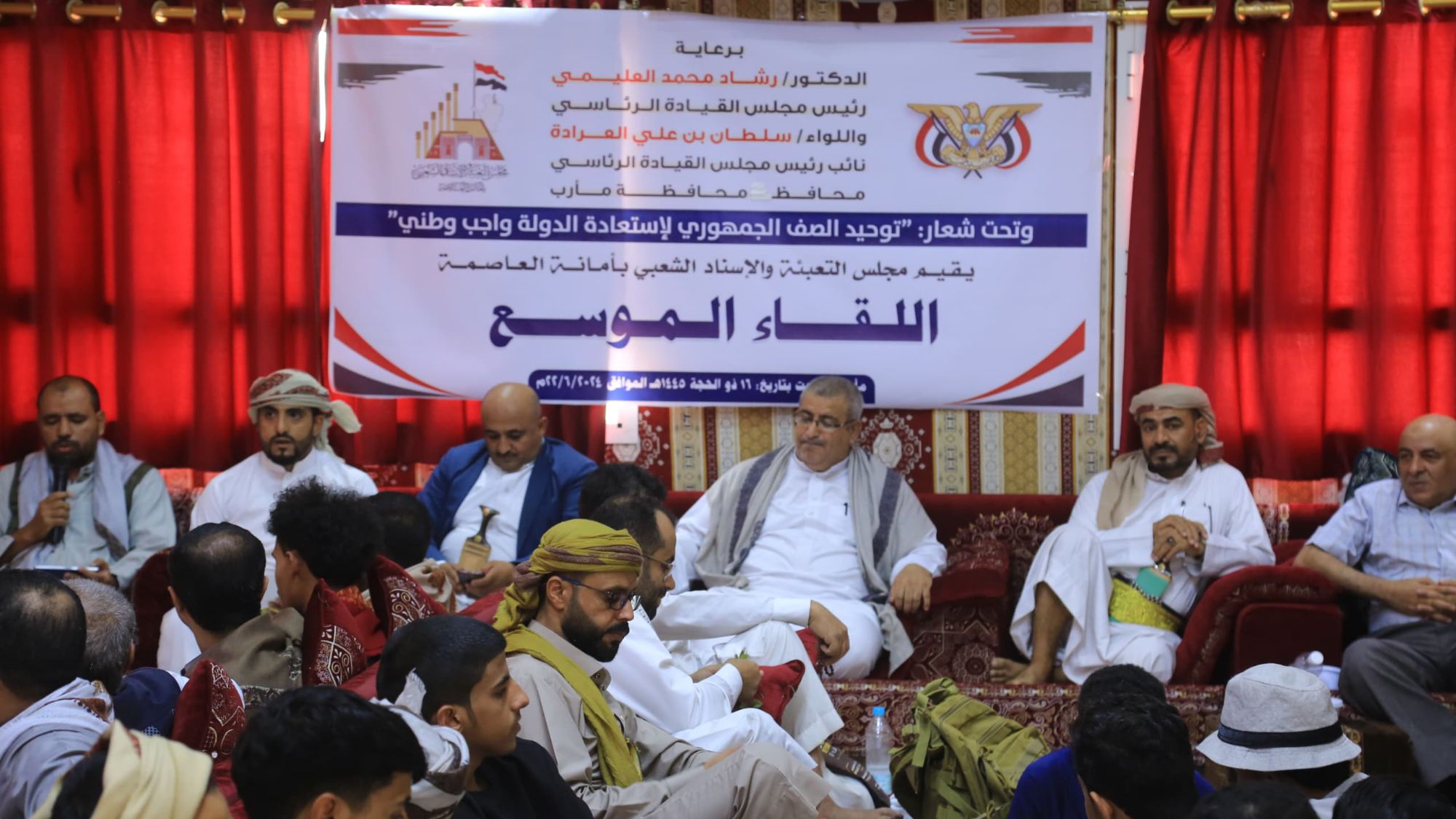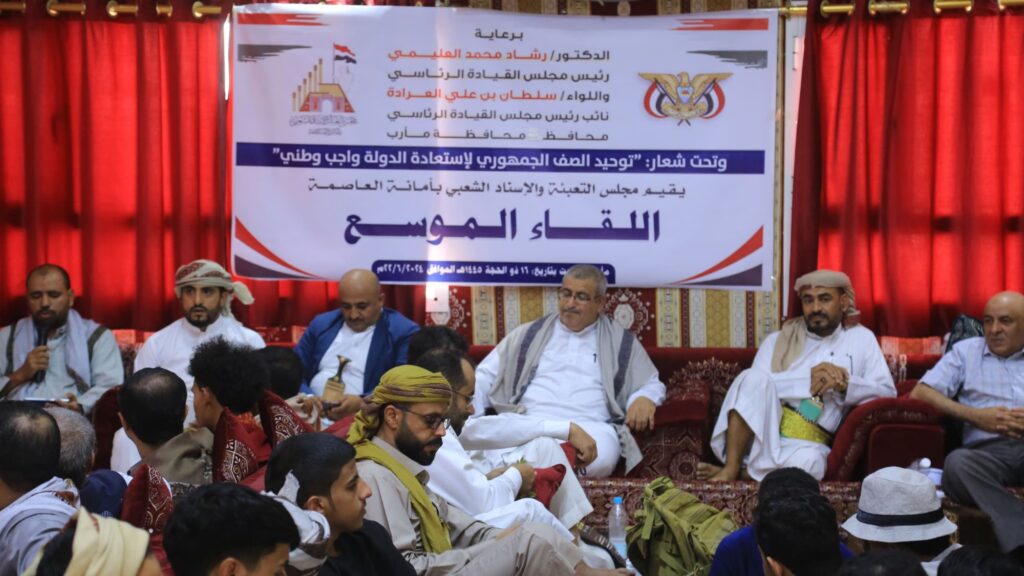 اللقاء الذي كان برعاية رئيس مجلس القيادة الرئاسي رشاد العليمي ونائبه اللواء سلطان العرادة محافظ مأرب ركز على أهمية تعزيز وحدة الصف الوطني لمواجهة الانقلاب الحوثي واستعادة صنعاء.