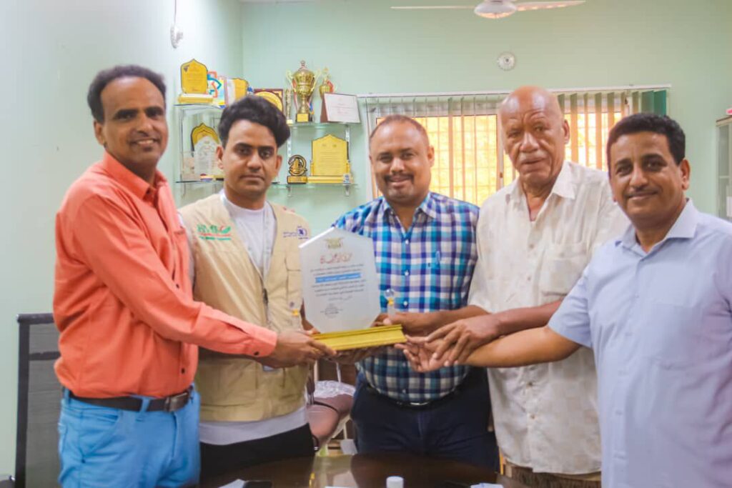 وفي ختام اللقاء قدم مكتب وزارة الصحة و السكان بحضرموت الساحل درع للمؤسسة الطبية الميدانية FMF تقديرا لدورهم في دعم القطاع الصحي بالمحافظة .