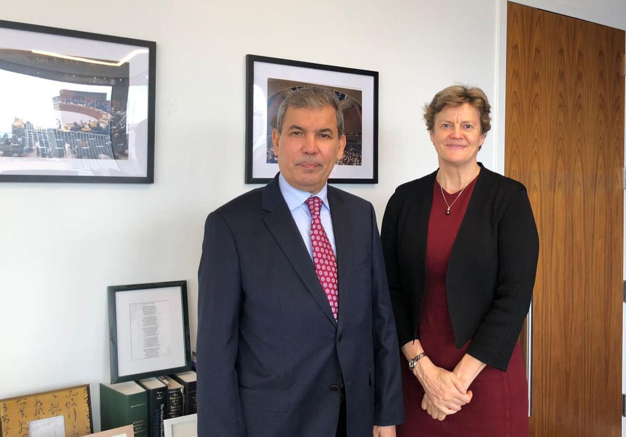 بحث مندوب اليمن الدائم لدى الامم المتحدة السفير عبدالله السعدي، اليوم، مع المندوبة الدائمة للمملكة المتحدة لدى الامم المتحدة، السفيرة باربارا وودوارد، سبل تعزيز وتطوير العلاقات الثنائية بين البلدين الصديقين.
