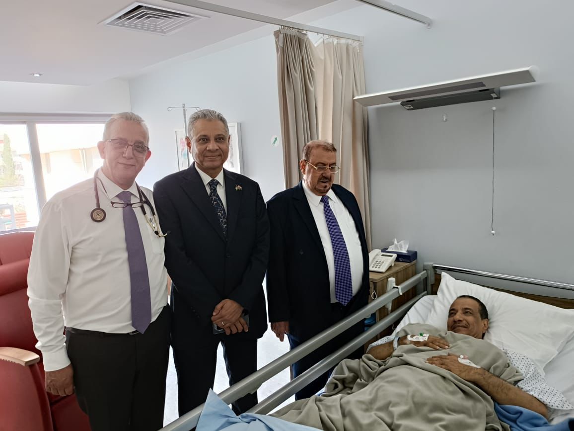 واطمأن البركاني ومعه سفير اليمن لدى المملكة الاردنية الهاشمية الدكتور جلال فقيرة، على صحة العميد الاكحلي..متمنياً له الشفاء العاجل وأن يعود بالسلامة إلى ممارسة مهامه الوطنية.