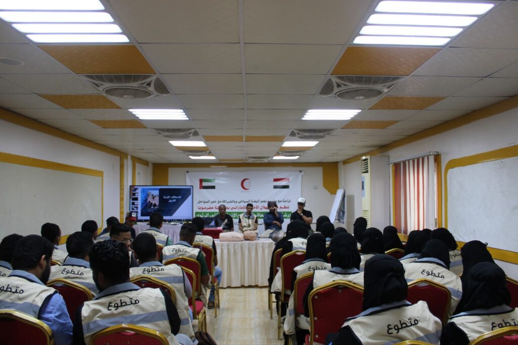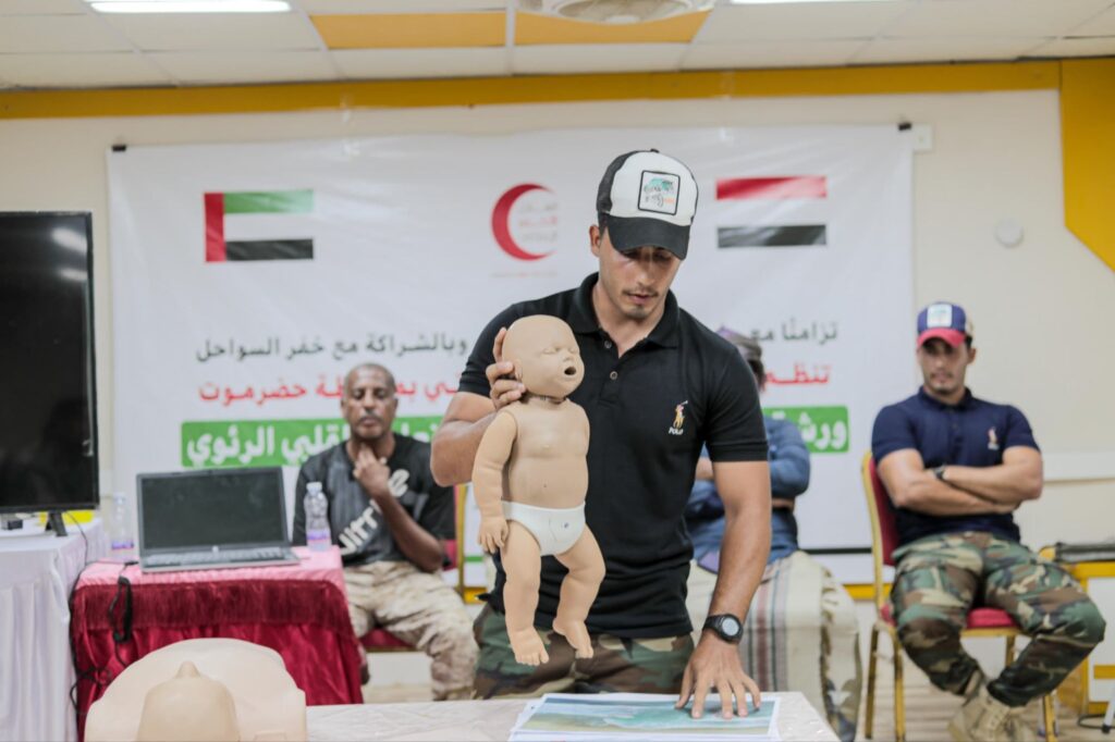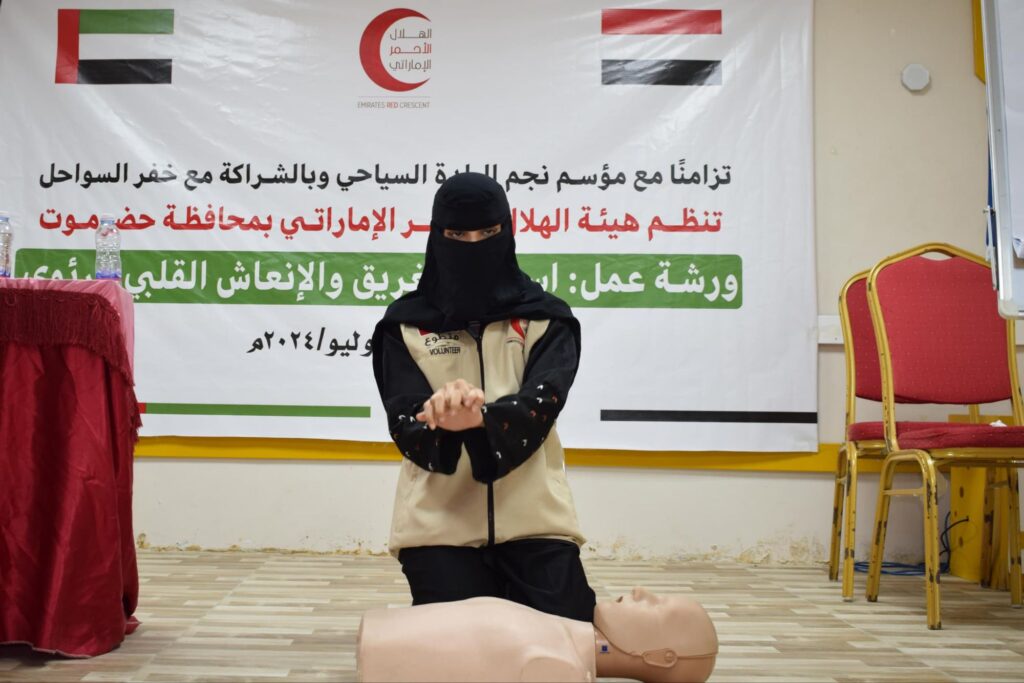 في إطار جهودها لتعزيز السلامة والأمن البحري، نظمت هيئة الهلال الأحمر الإماراتي بالتعاون مع خفر السواحل ورشة تدريبية حول إسعاف الغريق والإنعاش القلبي الرئوي في مدينة المكلا، تزامنًا مع موسم نجم البلدة السياحي.