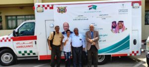 سلم البرنامج الوطني للامداد الدوائي، اليوم، مكتب الصحة العامة والسكان بالعاصمة المؤقتة عدن، سيارتي إسعاف بدعم من البرنامج السعودي لتنمية واعمار اليمن.