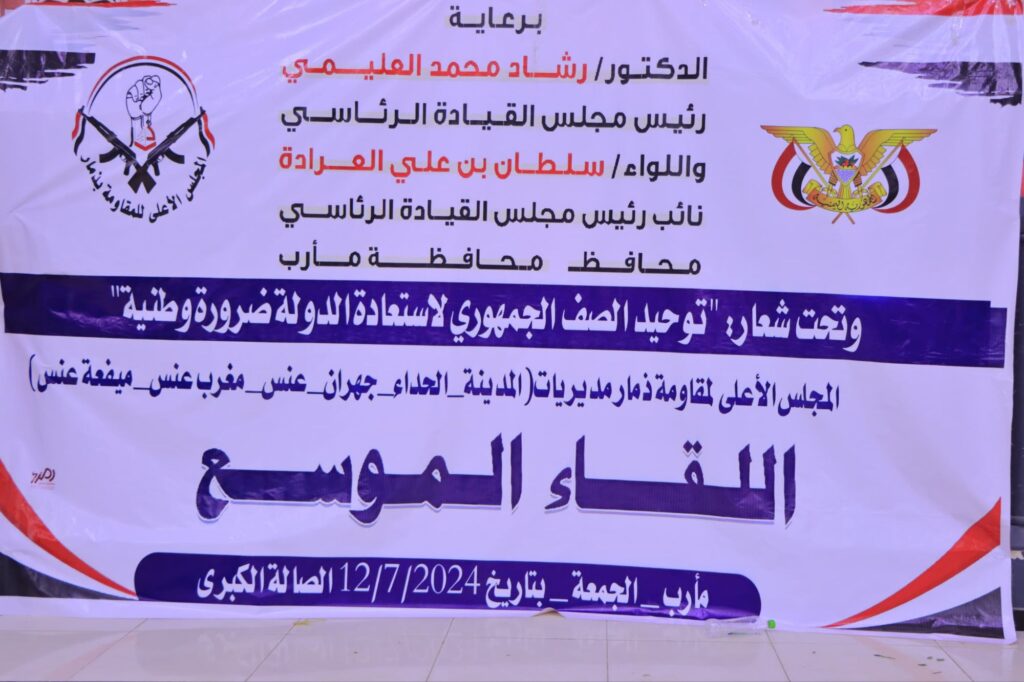 معبرا عن تأييد أبناء ذمار ومساندتهم لكافة القرارات والإجراءات الضرورية التي تتخذها الحكومة ومؤسسات الدولة الشرعية في كافة الملفات و مختلف الأصعدة السياسية والاقتصادية والعسكرية.