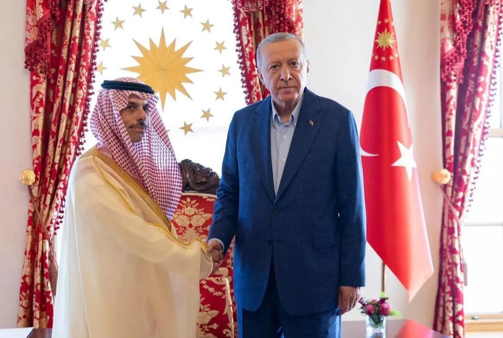 استقبل الرئيس رجب طيب أردوغان رئيس جمهورية تركيا، اليوم، في قصر دولما بهتشه بمدينة إسطنبول، وزير الخارجية السعودي، صاحب السمو الأمير فيصل بن فرحان.