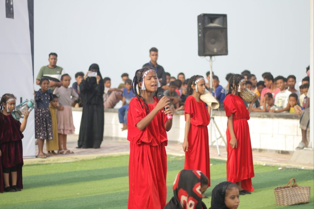 وتخلل التدشين الذي يأتي برعاية محافظ حضرموت الأستاذ مبخوت مبارك بن ماضي وإشراف السلطة المحلية بمديرية الشحر ومكتب الثقافة بساحل حضرموت والمديرية، لوحة تراثية وشعبية قدمتها الفرقة الطفولية زهرات بصمة فرح “بعنوان بوابة التاريخ” نالت استحسان الحضور ، إلى جانب تقديم أسئلة ومسابقات أدخلت البهجة والسرور على الحاضرين .