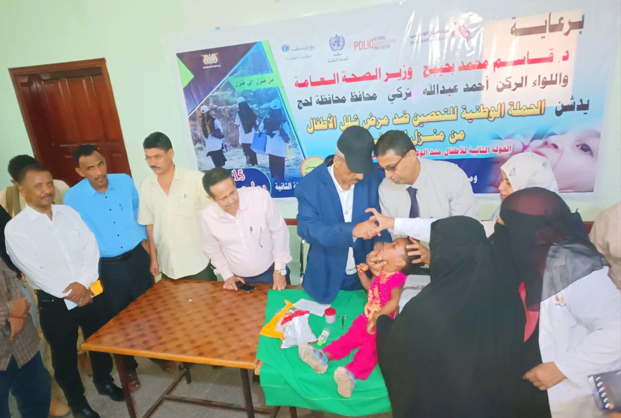 دشَّن محافظ محافظة، لحج اللواء الركن أحمد تُركي، اليوم، ومعه وكيل المحافظة وضاح الحالمي، الجولة الثانية من الحملة الوطنية الاحترازية للتحصين ضد مرض شلل الأطفال، بتنظيم وزارة الصحة العامة والسكان وتمويل من منظمتي الصحة العالمية واليونيسيف.