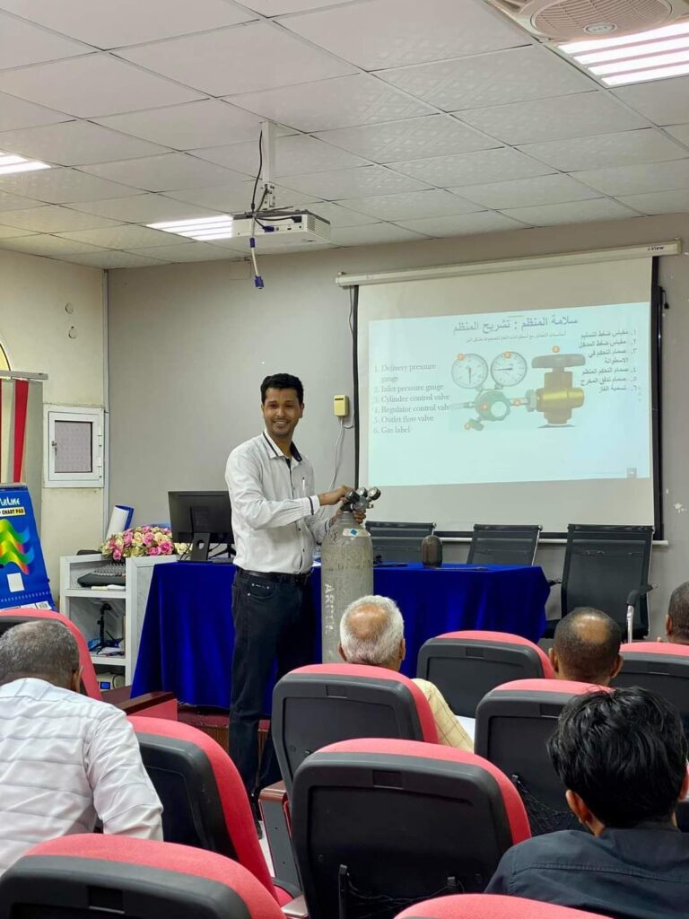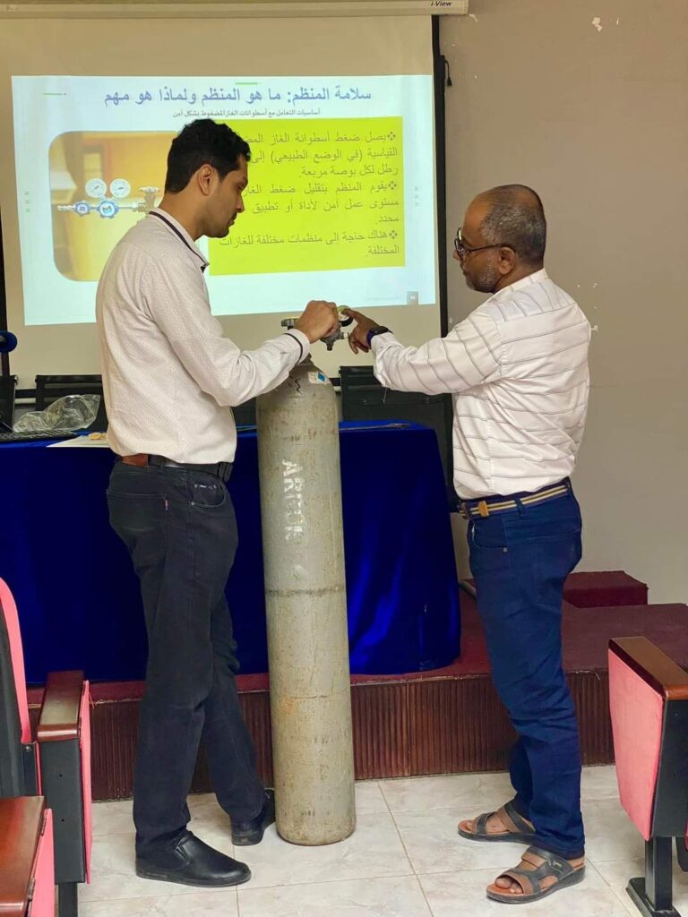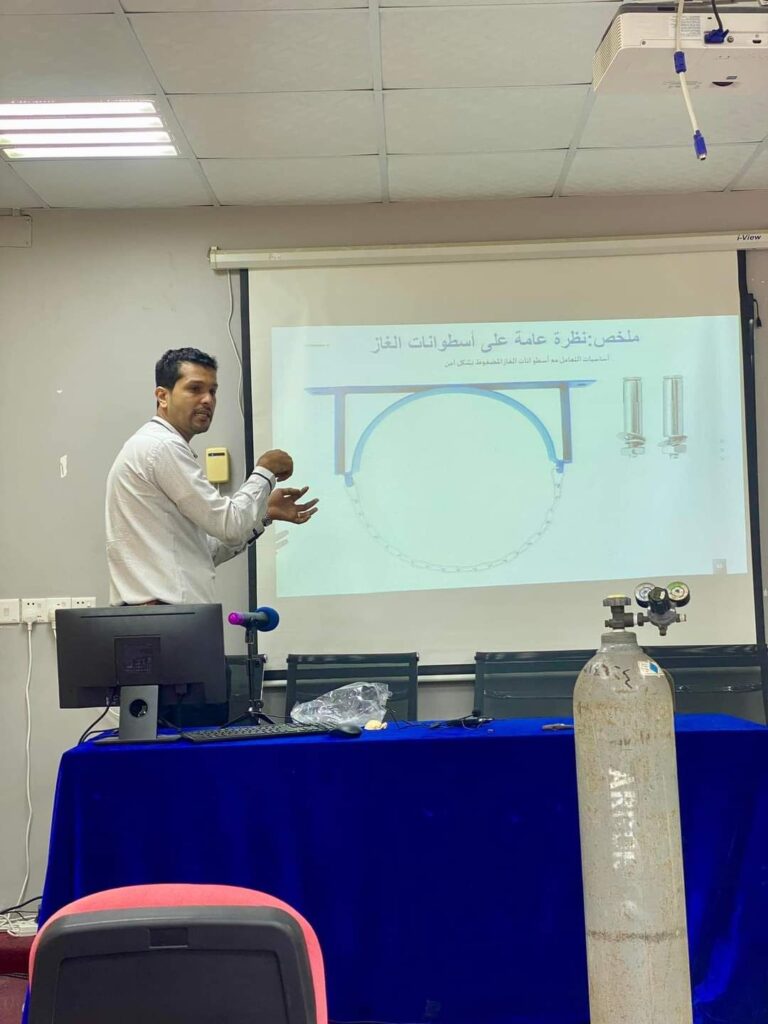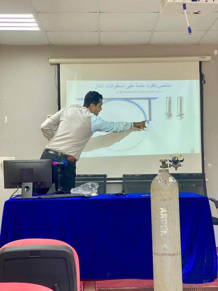 ضمن أنشطة فريق الجودة ومكافحة العدوى أقيمت… دورة تدريبية بقاعة المركز الوطني لمختبرات الصحة العامة المركزية بساحل حضرموت لفني المختبر تحت عنوان “أساسيات التعامل مع أسطوانات الغاز المضغوط بشكل آمن” وذلك لرفع مستوى وعي الفنيين ورؤساء الأقسام بكيفية التعامل الأمن مع أسطوانات الغاز المضغوط