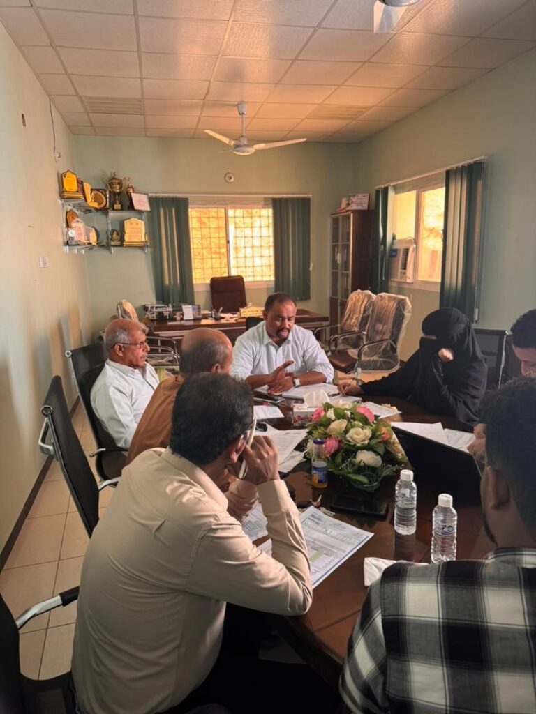 عقد بمكتب وزارة الصحة العامة والسكان بحضرموت الساحل اجتماع برئاية الدكتور محمد صالح الجمحي المدير العام وبحضور الأستاذ عبدالله خميس مرعي بن طالب نائب المدير العام لشئون التخطيط و التنمية الصحية .