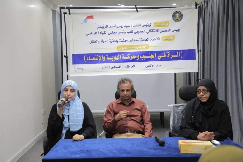 هذا وكانت قد افتتحت المحاضرة، الأستاذة ياسمين مساعد حُميد رئيس دائرة المرأة والطفل، بكلمة عبرت فيها عن سعادتها بتواجدها وسط كوكبة نسوية متميزة، مشيرة إلى أن المحاضرة تهدف لتسليط الضوء على دور المرأة الجنوبية المحوري في صراعنا المشروع للحفاظ على هويتنا وانتماءنا الجنوبي، باعتبارها هي نصف المجتمع، وهي شريكة أساسية في بناء مستقبلنا، وقد أثبتت على مر التاريخ أنها قادرة على تحمل المسؤولية والقيادة.