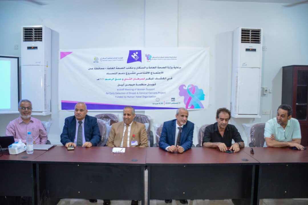 دشنت المؤسسة الوطنية لمكافحة السرطان بمحافظة عدن، اليوم، مشروع دعم النساء في الكشف المبكر لسرطان الثدي وعنق الرحم بتكلفة 90 ألف دولار بتمويل من منظمة هيومن أبيل.