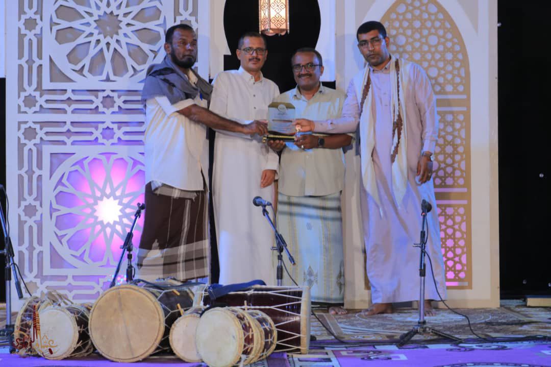 ووسط أجواء احتفائية بهيجة، تسلّم رئيس النادي خالد بامصري ، درع التكريم من قبل الأمين العام للمجلس المحلي بتريم علي صبيح ومستشار وزير الإعلام والثقافة والسياحة حسن الكاف ومدير ادارة الثقافة بمديرية تريم عبدالله بن حميدان.