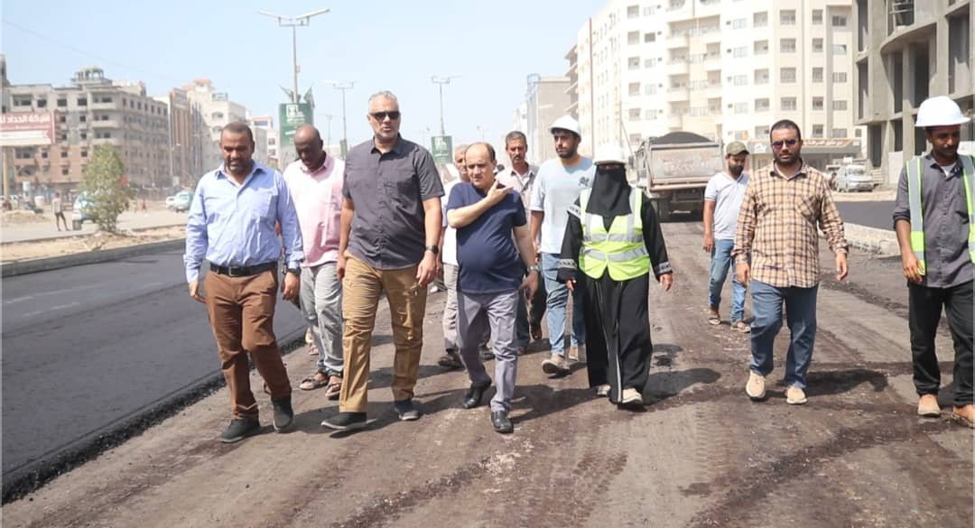 الماس والحالمي يطلعان على سير أعمال الاسفلت في مشروع خط جولة السفينة إلى جولة الكثيري في عدن