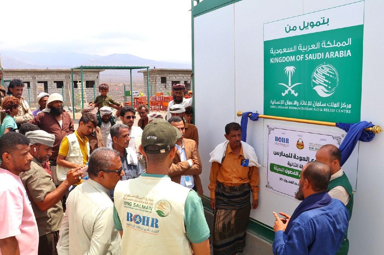 سلم مركز الملك سلمان للإغاثة والأعمال الإنسانية، 30 فصلاً دراسياً بديلاً، وتوزيع 600 حقيبة دراسية وزي مدرسي للطلاب والطالبات في مديرية خنفر بمحافظة أبين، ضمن المرحلة الثانية من مشروع العودة للمدارس.