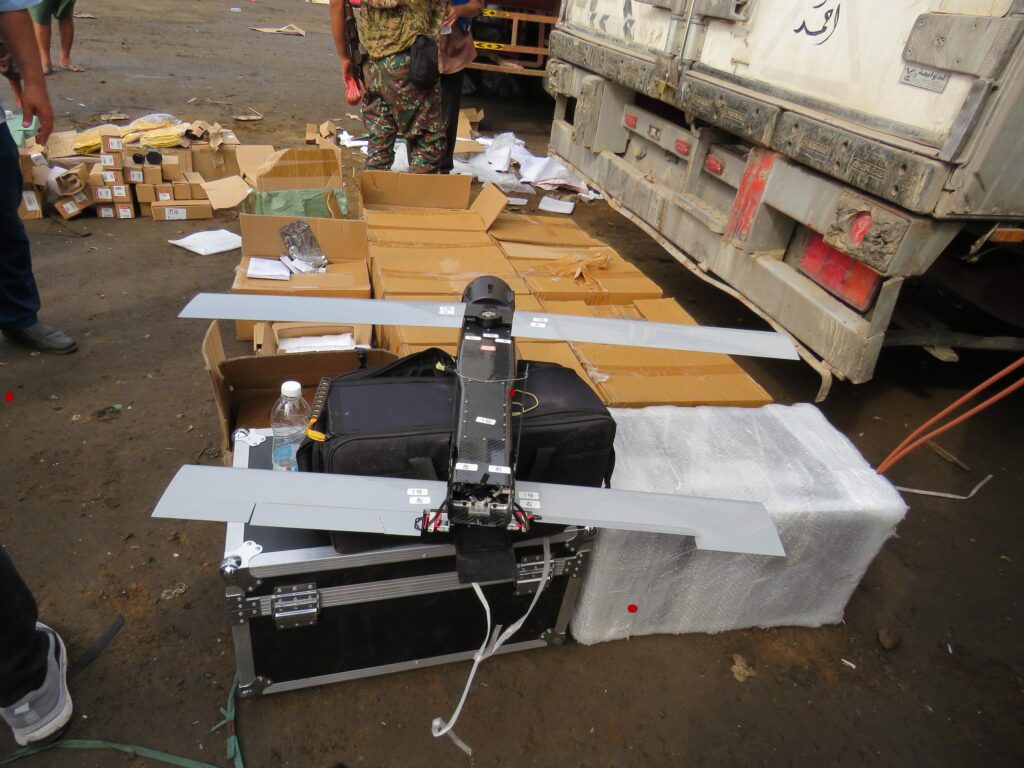 ضبط وتحريز 58 حاوية تزن أكثر من 2500 طن تحتوي على مصانع طائرات مسيرة، ومعدات عسكرية وتجسسية حوثية بميناء عدن