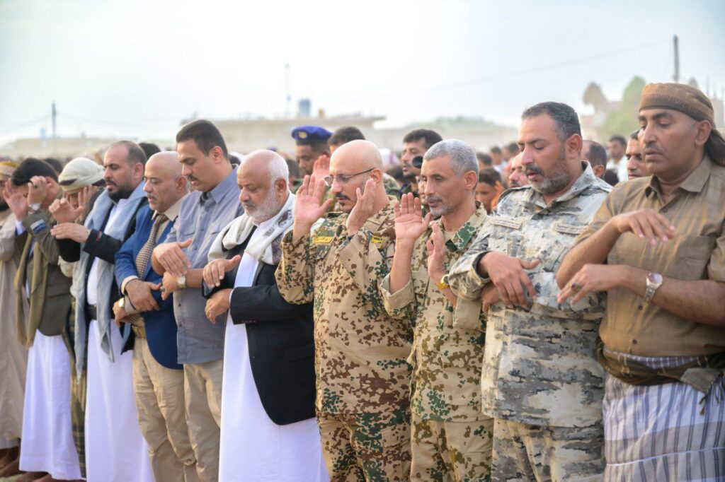 عضو مجلس القيادة طارق صالح يؤدي صلاة العيد مع جموع المواطنين في الخوخة
