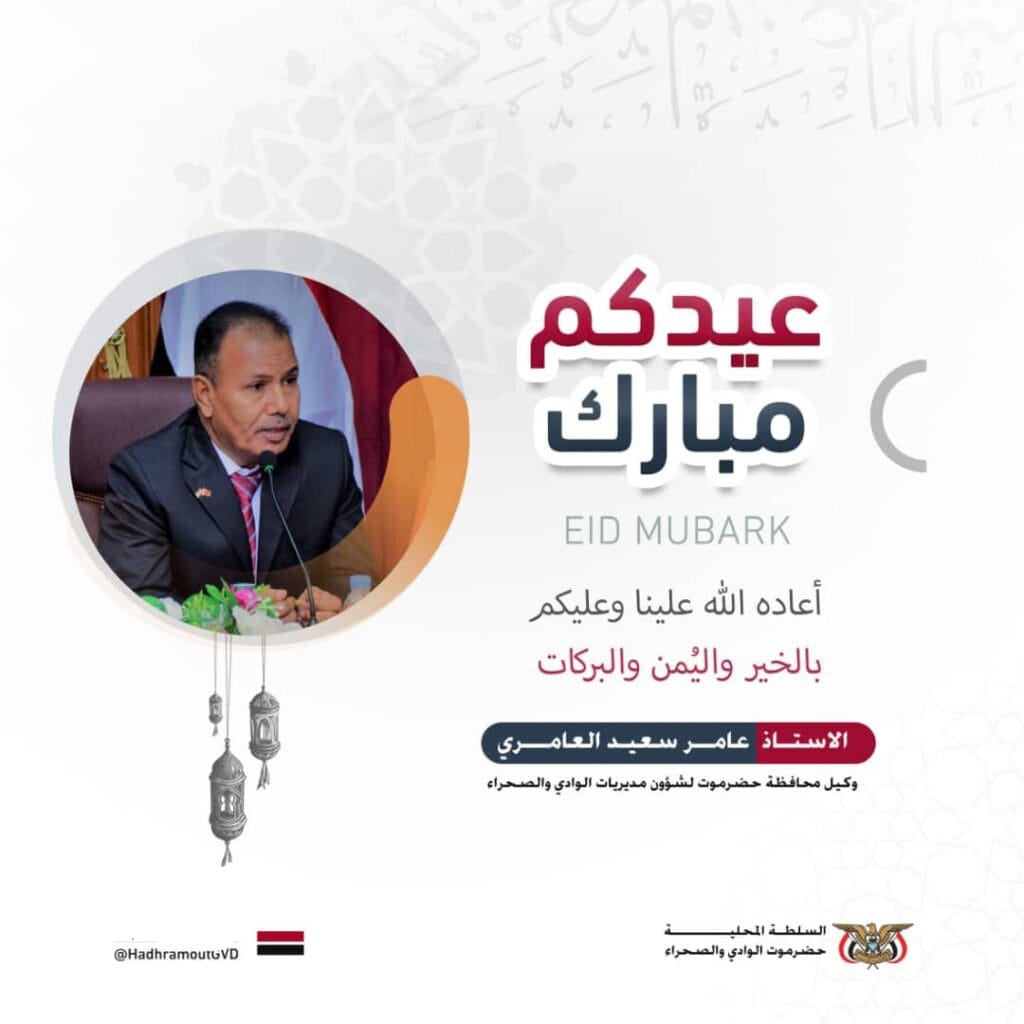 الوكيل العامري يهنئ فخامة رئيس وأعضاء مجلس القيادة الرئاسي ورئاسة الحكومة وقيادة السلطة المحلية بحضرموت بعيد الفطر المبارك