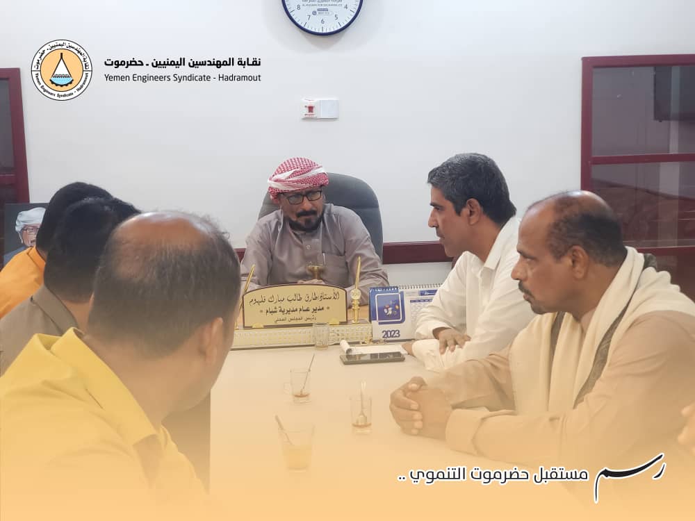 نقيب المهندسين بمحافظة حضرموت يلتقي المدير العام لمديرية شبام لمناقشة خطة مشاريع المديرية