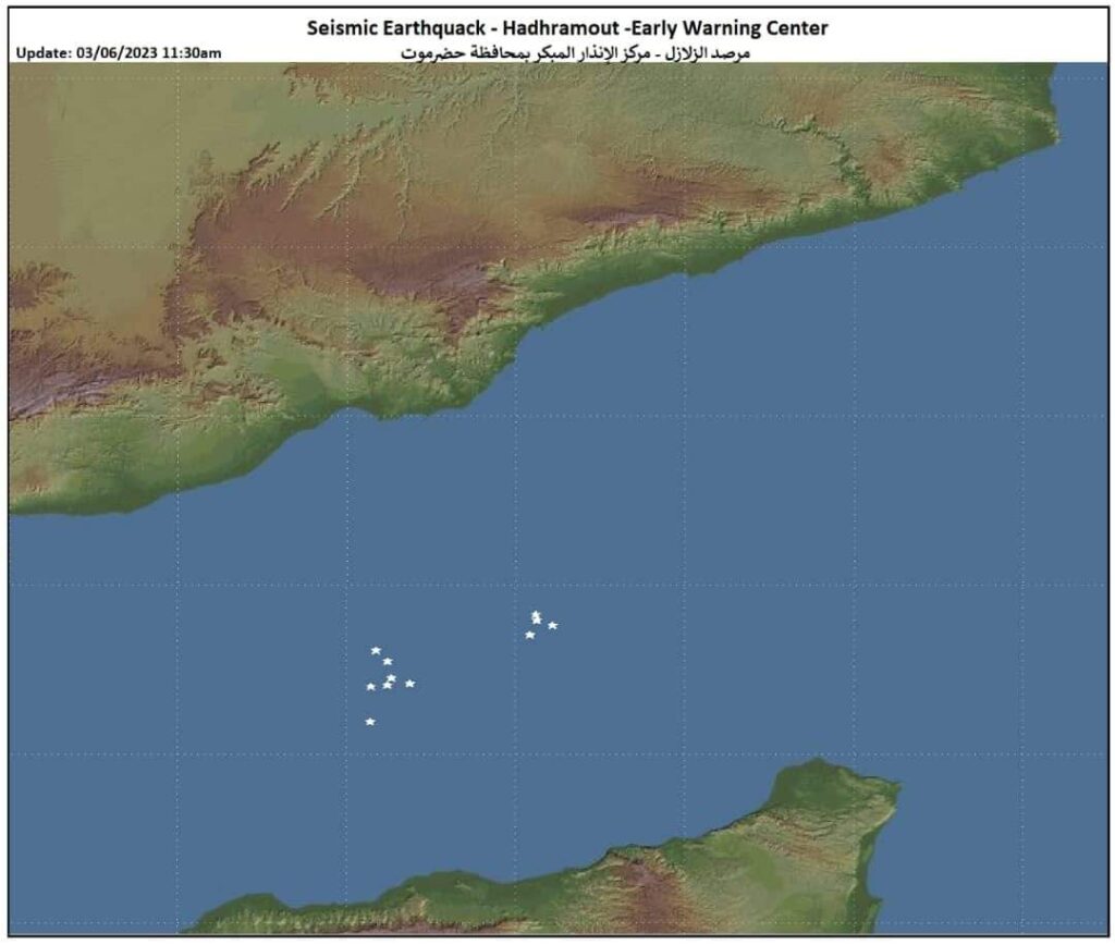 مركز الإنذار المبكر من الكوارث والمخاطر المناخية المتعددة بمحافظة حضرموت يصدر توضيحا حول سرب الهزات الزلزالية في خليج عدن