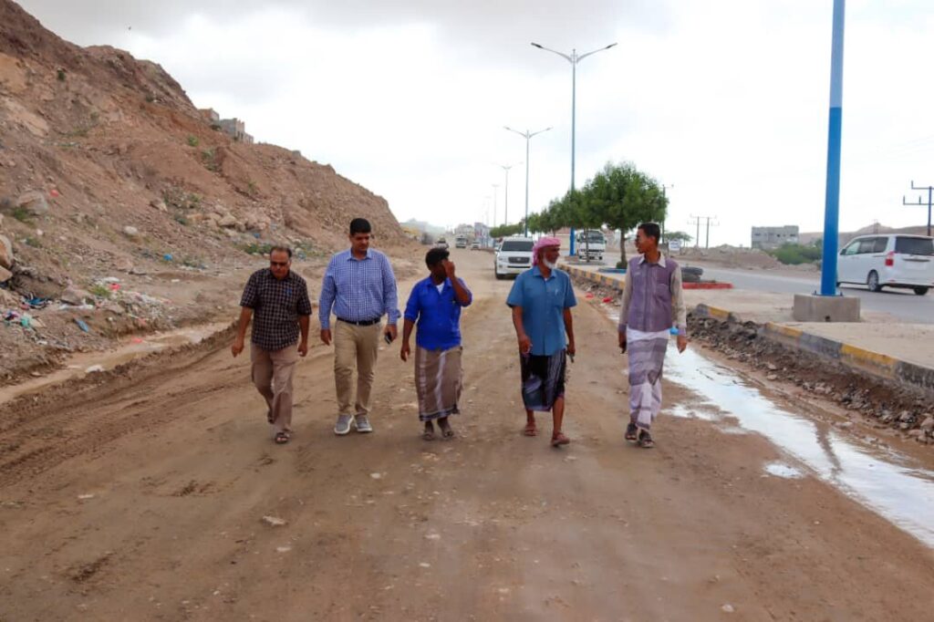 مدير الأشغال العامة بساحل حضرموت يتفقد إعادة تأهيل الشارع الرئيسي بجول مسحه