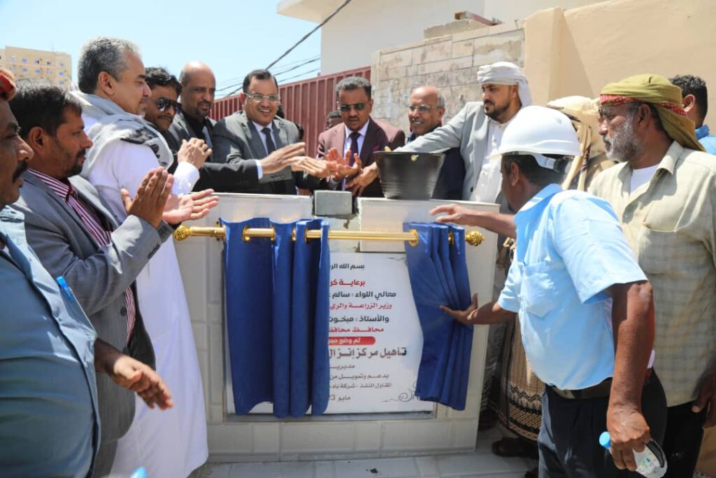 وزير الزراعة والري والثروة السمكية يضع حجر الأساس لمشروع إعادة تأهيل مركز إنزال الشحر السمكي