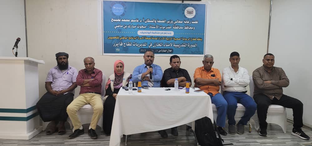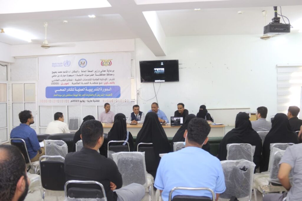 برعاية معالي وزير الصحة والسكان ومحافظ حضرموت تدشين الدورة التدريبية للكادر الصحي بالعنايات الحرجة بهيئة مستشفى أبن سيناء العام بدعم من منظمة الصحة العالمية بالمكلا