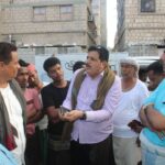 المدير العام لمديرية مدينة المكلا ومدير عام مؤسسة المياه والصرف الصحي يتطلعان على إشكال المياة بمنطقة فوه