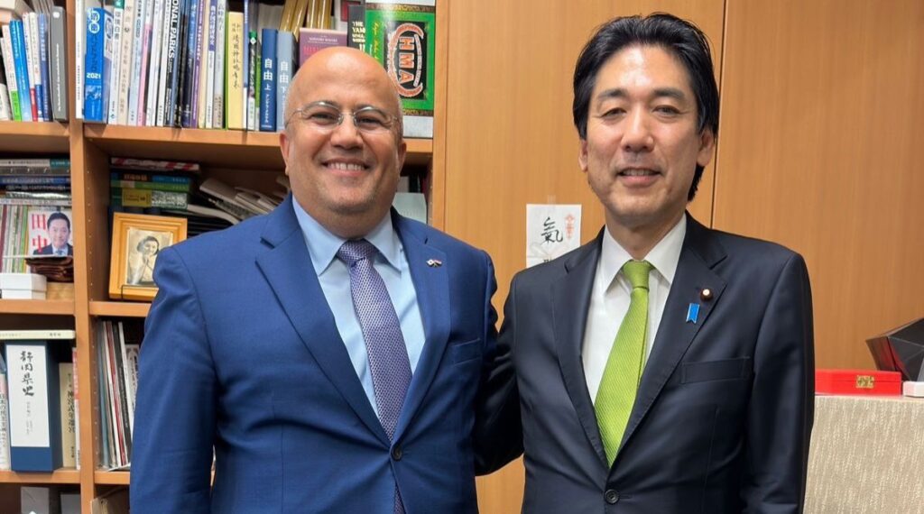 السفير السنيني يبحث مع وزير الامن الاقتصاد الياباني مجالات الدعم الاقتصادي والتنموي