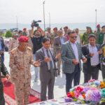 البحسني يضع إكليلًا من الورد على ضريح الجندي المجهول بالنصب التذكاري وساحة شهداء حضرموت (صور)