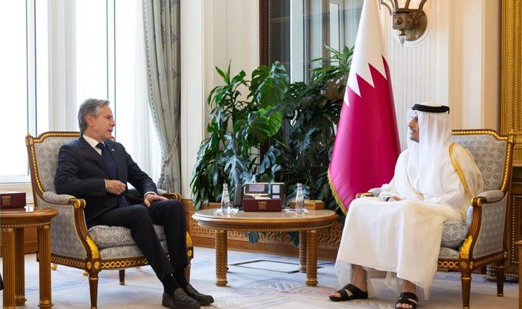 رئيس الوزراء القطري ووزير الخارجية الأمريكي يبحثان جهود الوساطة المشتركة لإنهاء الحرب في غزة