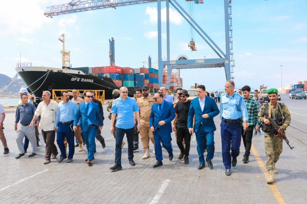 وزير النقل يطلع على سير العمل بمحطة الحاويات بميناء عدن