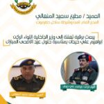 مدير الأمن والشرطة بساحل حضرموت يهنئ وزير الداخلية بمناسبة حلول عيد الأضحى المبارك