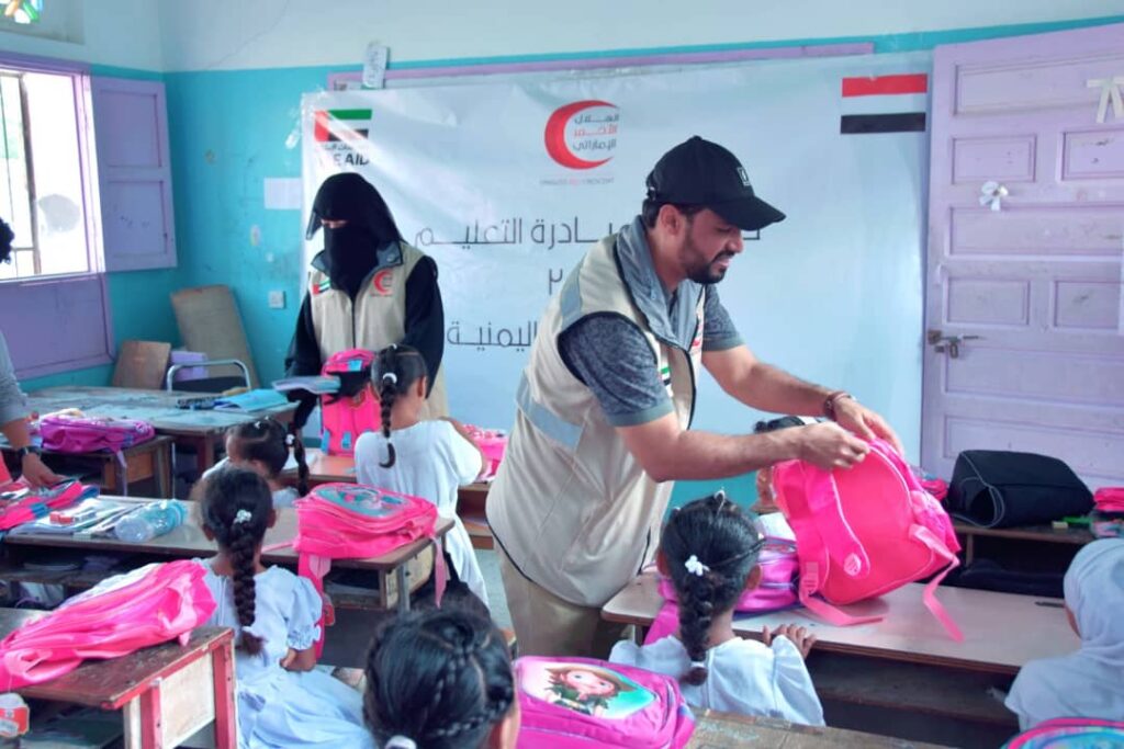 هيئة الهلال الأحمر الإماراتي تطلق مشروع توزيع الحقائب المدرسية في حضرموت