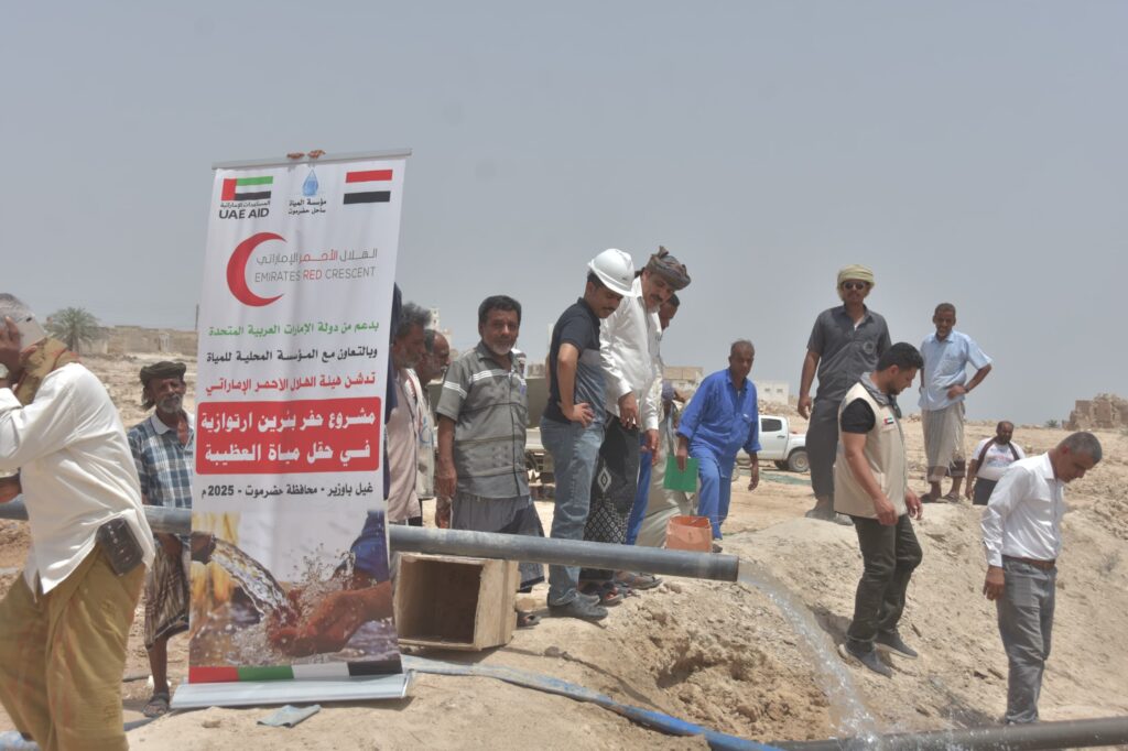 هيئة الهلال الأحمر الإماراتي تدشن مشروع حفر بئرين ارتوازية في حقل مياه العُظيبة بحضرموت
