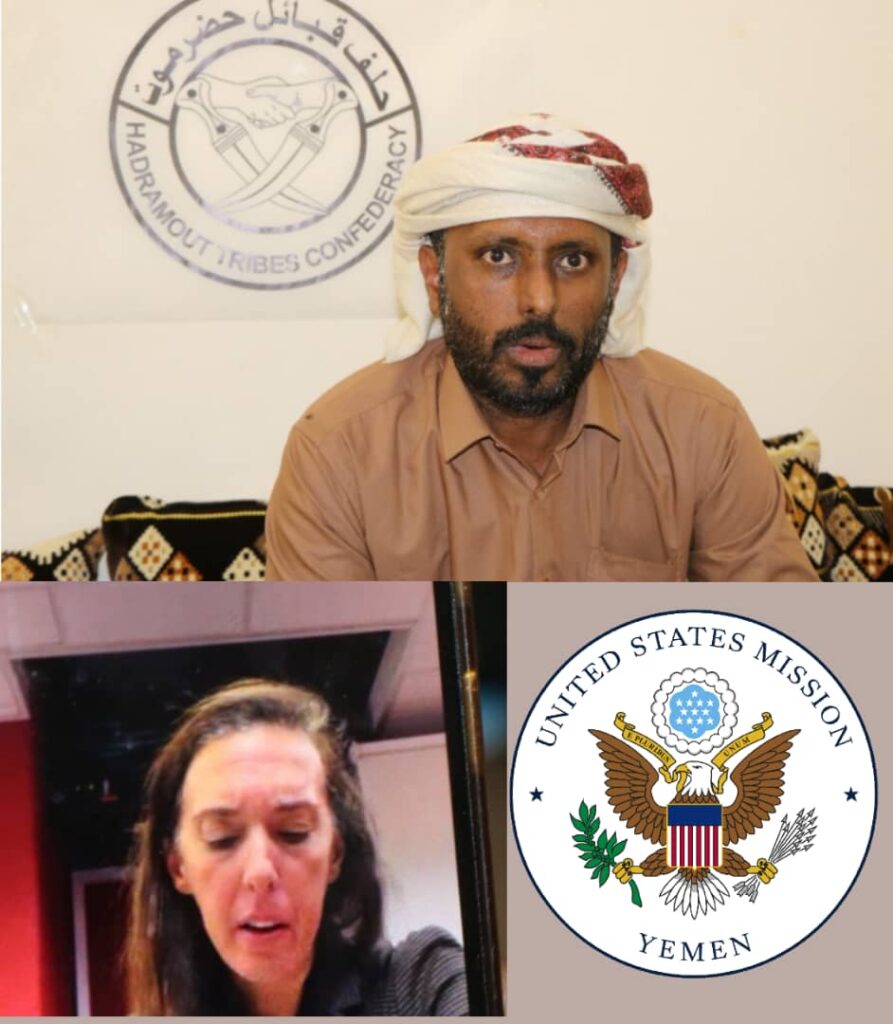 الشيخ بن حبريش يلتقي عبر الإتصال المرئي مسؤولين في السفارة الأمريكية لدى بلادنا