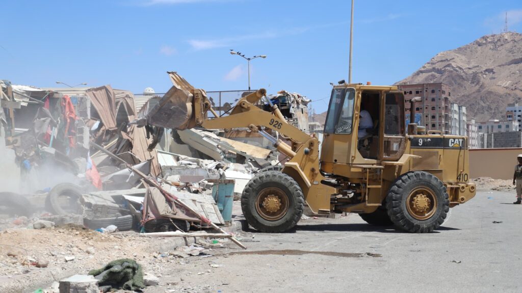 السلطة المحلية بحضرموت تنفّذ أعمال إزالة للعشوائيات ومظاهر التشوّه البصري بعاصمة المحافظة