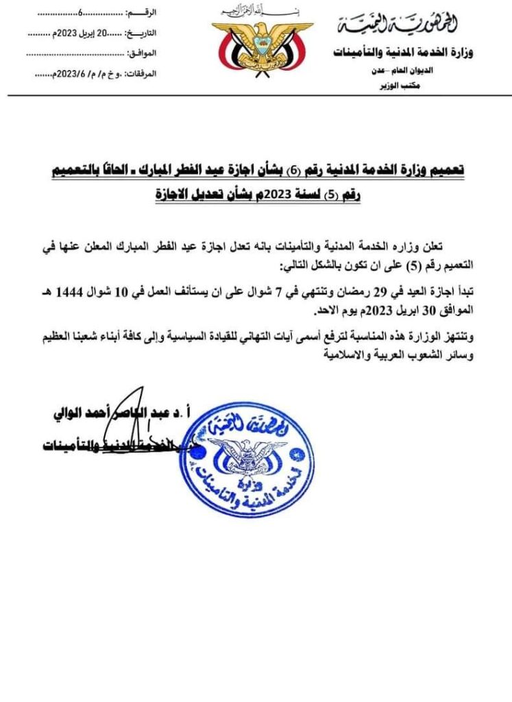 وزير الداخلية يرفع برقية تهنئة لرئيس وأعضاء مجلس القيادة بمناسبة عيد الفطر