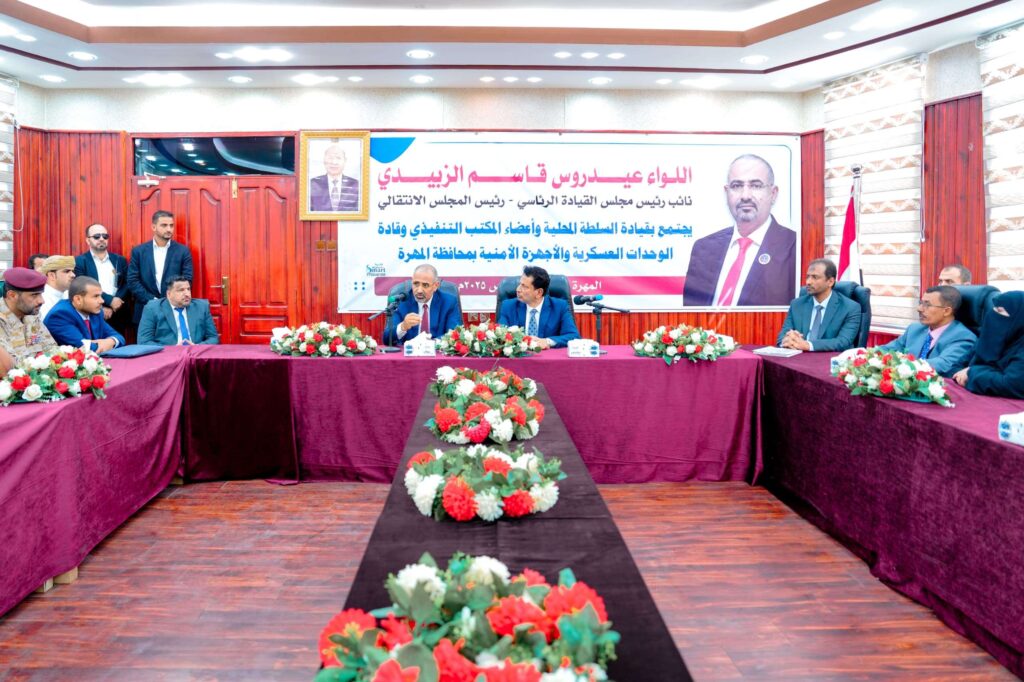 اللواء الزُبيدي يرأس اجتماعًا للسلطة المحلية والقادة العسكريين والأمنيين بمحافظة المهرة