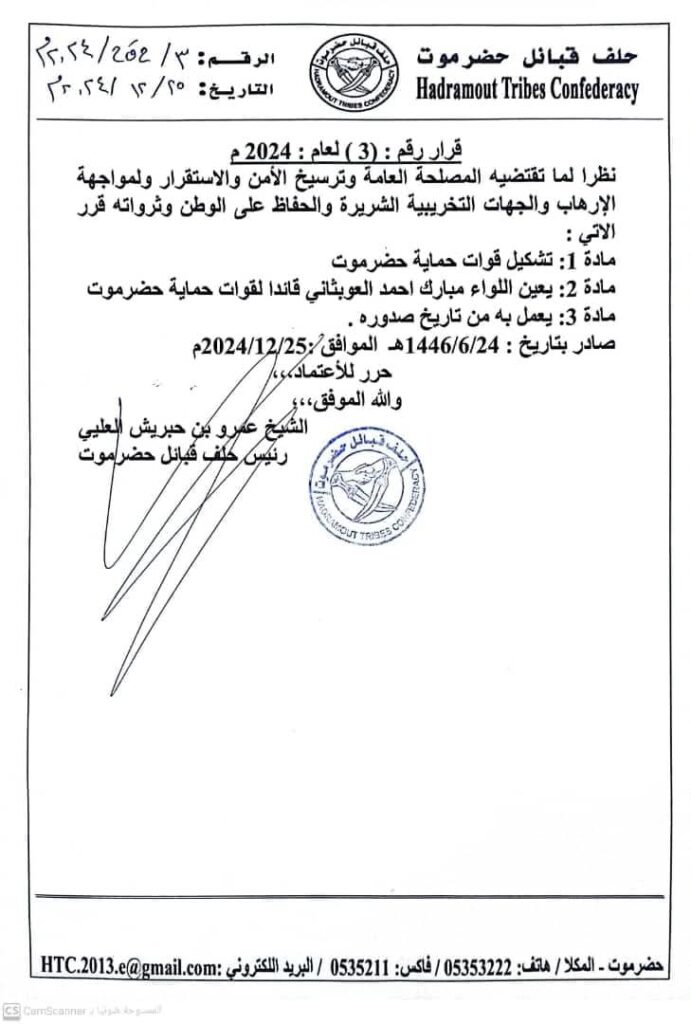 عاجل:صدور قرار لرئيس حلف قبائل حضرموت
