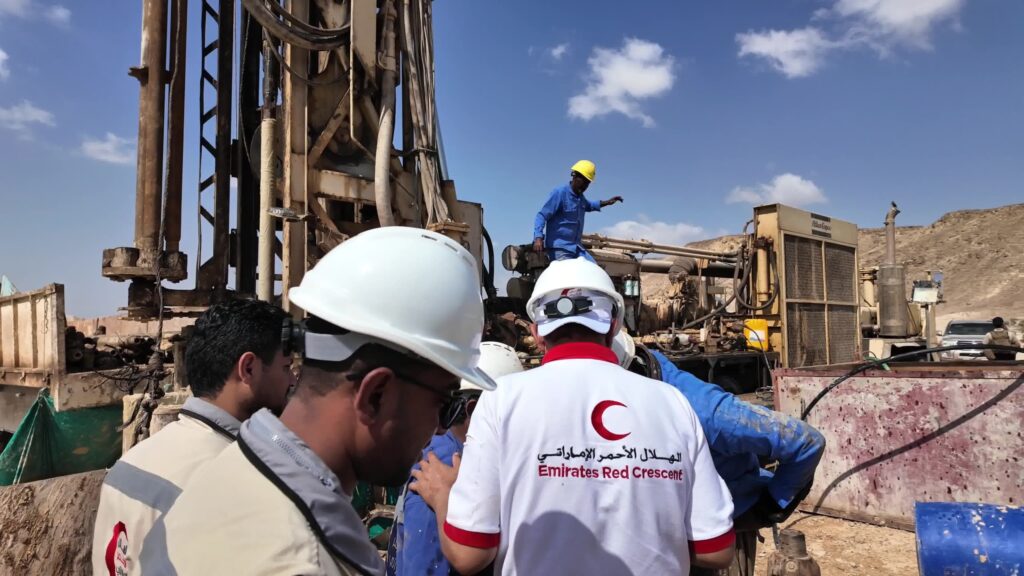 الهلال الأحمر الإماراتي يتفقد أعمال حفر بئر مياه ارتوازية بمديرية غيل باوزير بمحافظة حضرموت