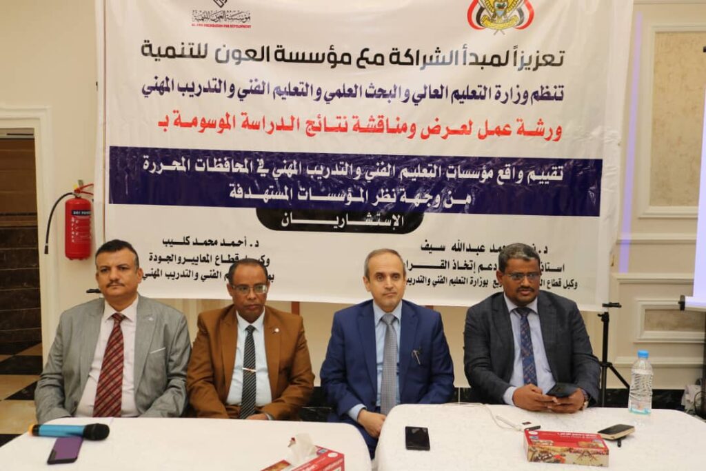 وزارة التعليم الفني تناقش نتائج تقييم واقع مؤسسات التعليم في المحافظات المحررة