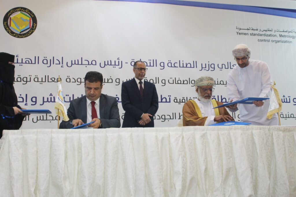 توقيع اتفاقيتين رئيسيتين في عدن بين الهيئة اليمنية للمواصفات وهيئة التقييس الخليجية