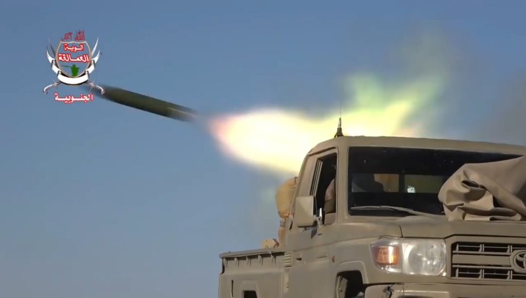 ألوية العمالقة الجنوبية تدكُّ أرتال تعزيزات حوثية كانت قادمة من البيضاء باتجاه بيحان شبوة