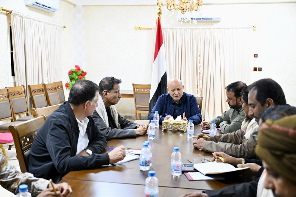 رئيس مجلس القيادة الرئاسي يجتمع بلجنة الطوارىء لمواجهة اثار الاعصار المداري