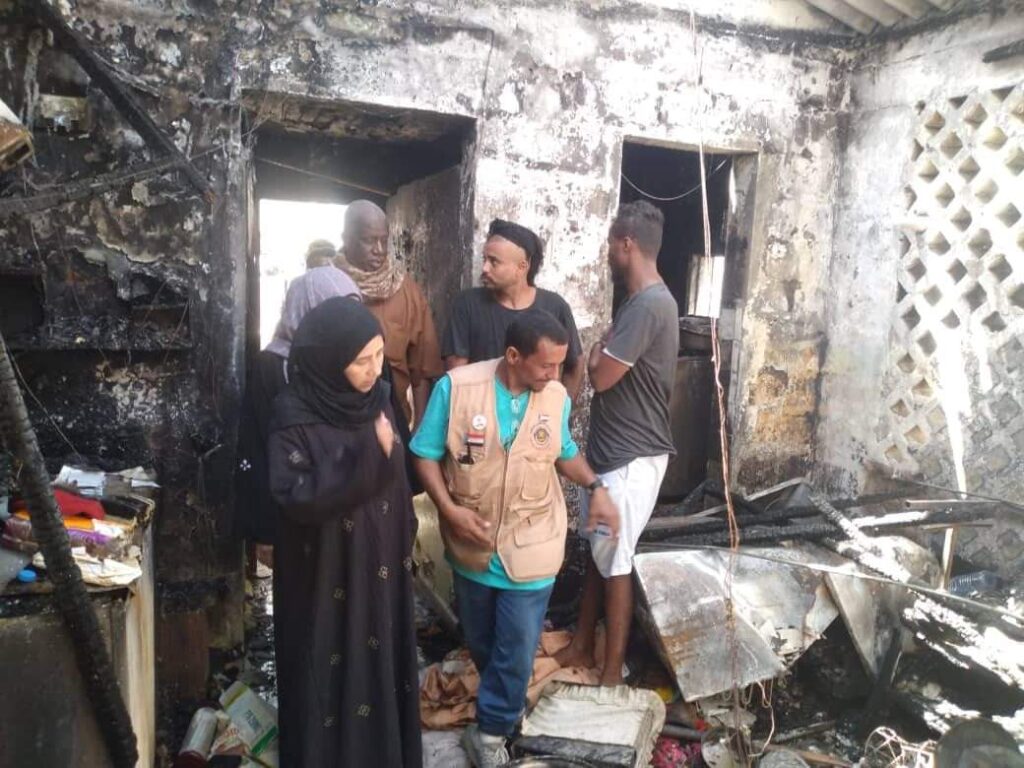 بتوجيهات من الزُبيدي.. هيئة الإغاثة والأعمال الانسانية تتفقد أحوال الأسرة المنكوبة بحريق منزلهم بالقلوعة