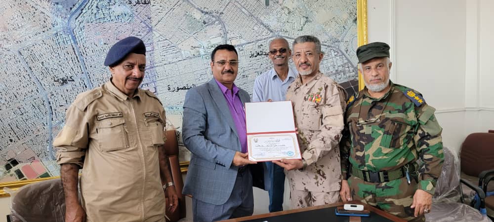 إدارة مكافحة المخدرات بشرطة عدن تكرم مدير عام المنصورة أحمد الداؤودي