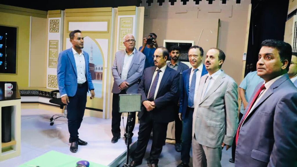 وزير الإعلام والثقافة والسياحة ومحافظ حضرموت يزوران مقر قناة حضرموت الفضائية الأهلية